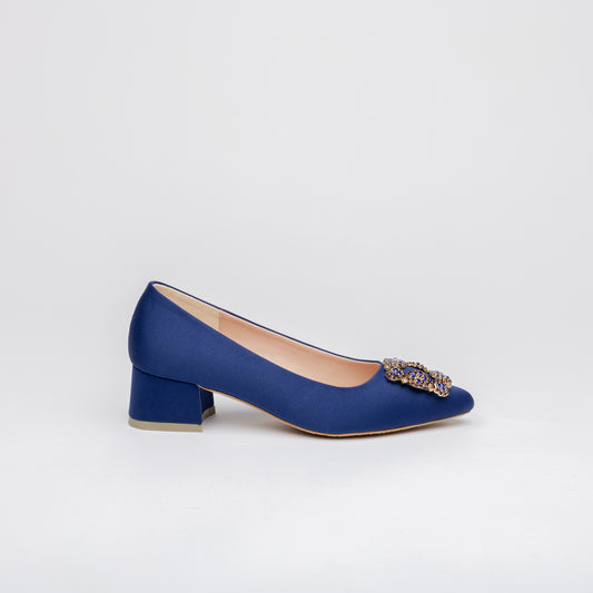 Sold outANYA Pointy Block Pumps - Steel Grey