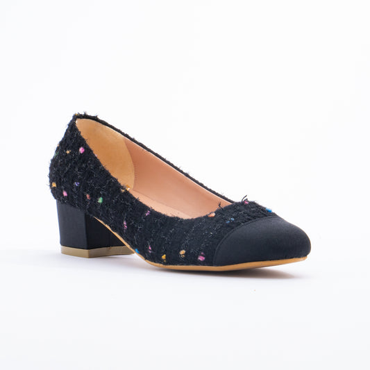 COMELLE Cross-Strap Kitten Heels - Midnight Black