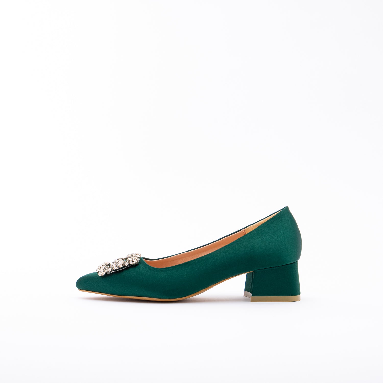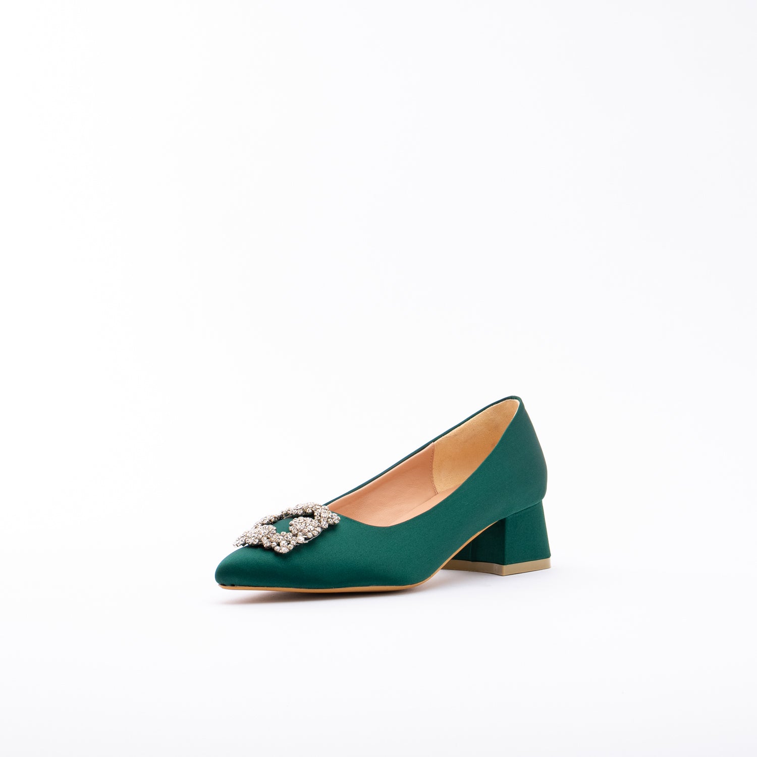 ANYA is our a sophisticated heel that marries graceful design with impeccable comfort. Crafted from luxurious satin silk, these 2-inch Razak heels offer a perfect balance of style and wearability. A delicate Ornament brooch adorns the shoe, adding a touch of classic sophistication.