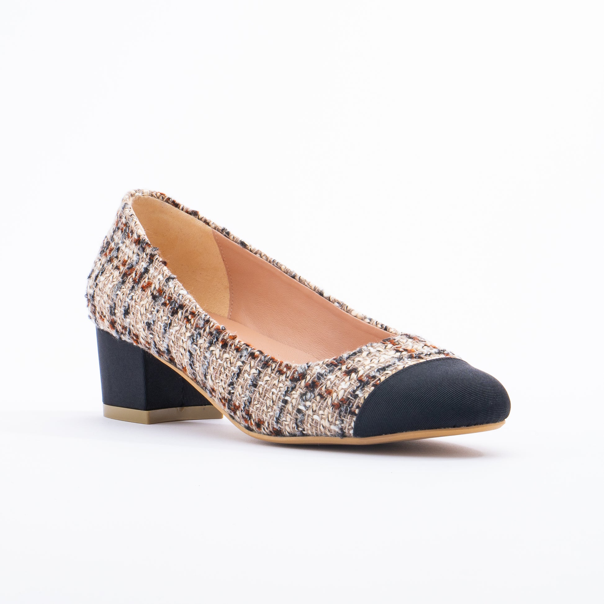 NORAH Tweed Block Pumps - Tiramisu