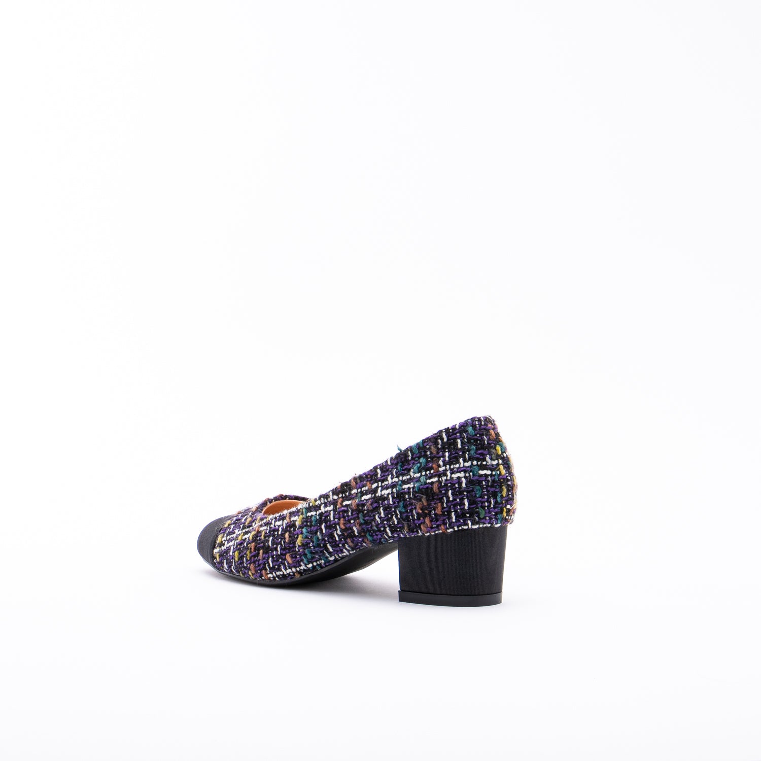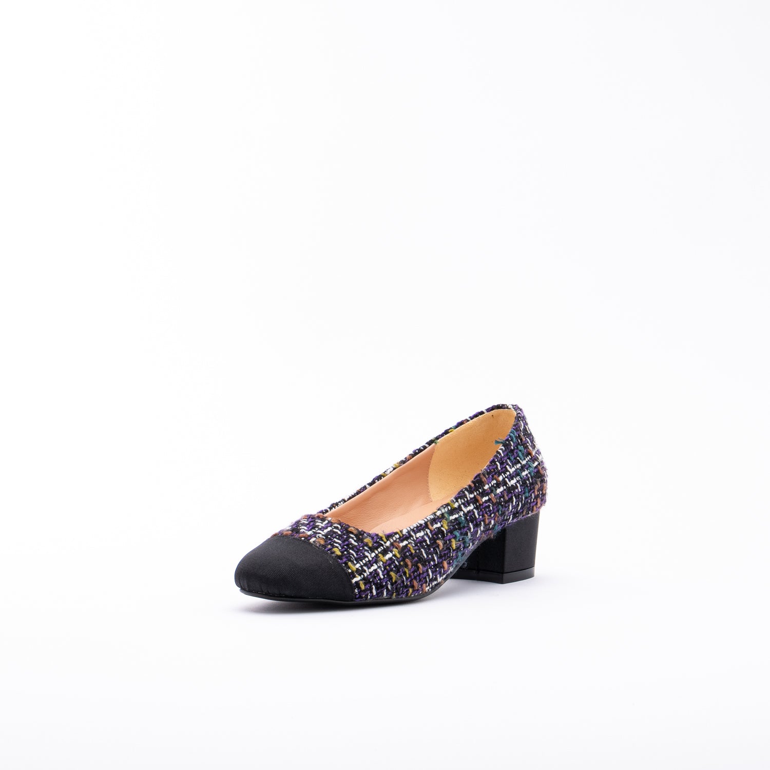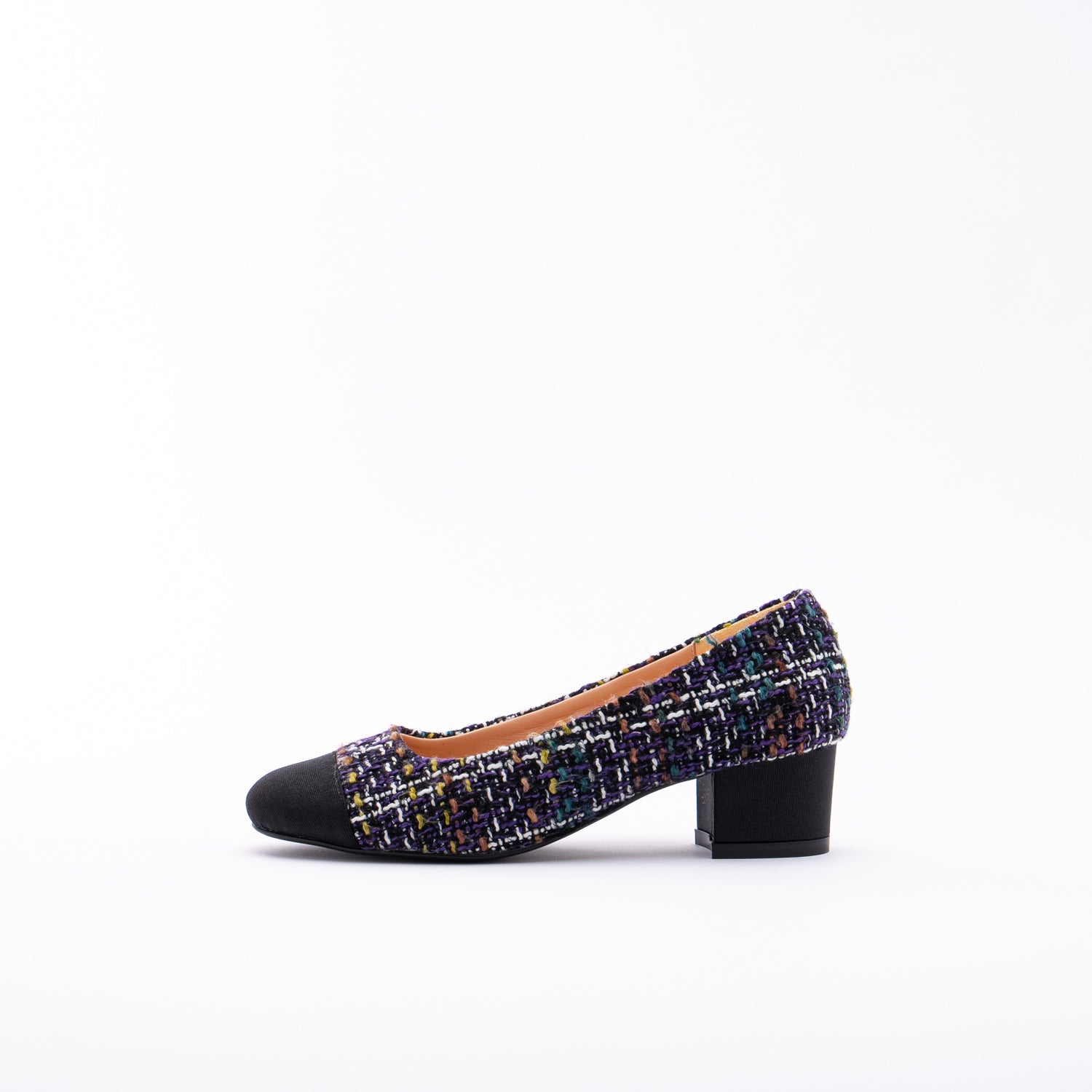 NORAH epitomizes timeless elegance with her distinctive round front design. Crafted from luxurious tweed, these shoes offer a sophisticated take on classic footwear. The grosgrain cap front adds a refined touch, while the delicate 1.5-inch heel provides a subtle, graceful lift.